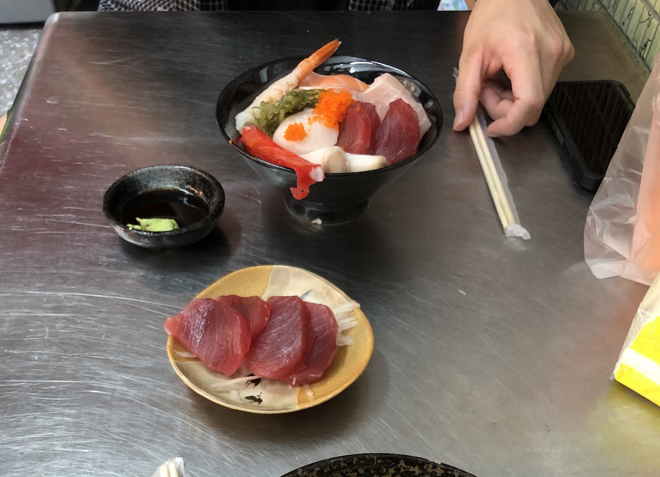老闆很健談,會問我喜歡怎麼樣的口感。然後幫我切一份我喜歡的生魚片,整個鮮甜。