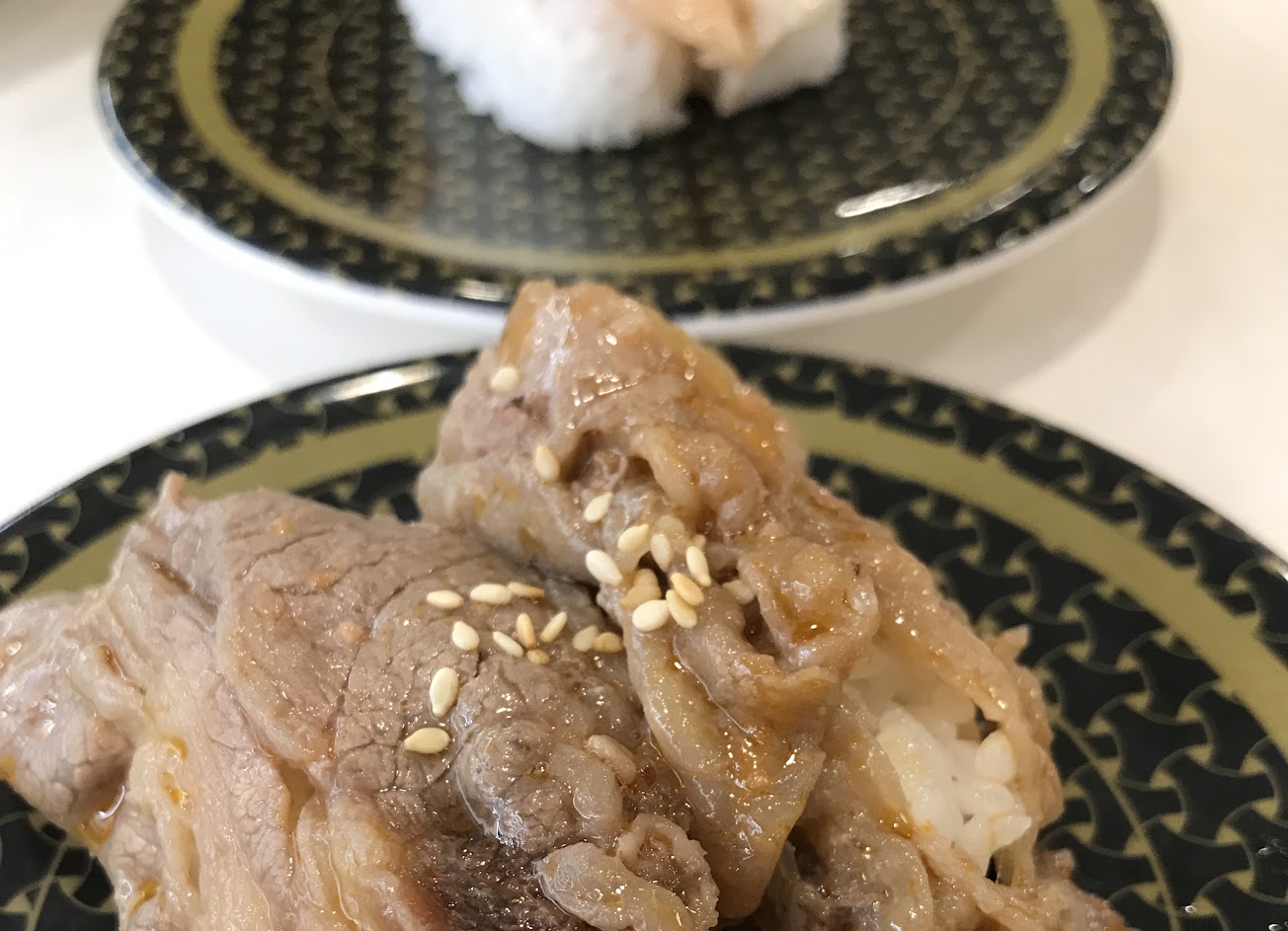 軌道上的壽司都跟圖片完全不同,看起來超絕望完全讓人沒有想拿的慾望。(圖片完全沒有調色) 飯超級鬆散!不管你是正著夾還是把壽司側躺著夾,飯都有極高機率在你送進嘴裡之前完整的散開:)