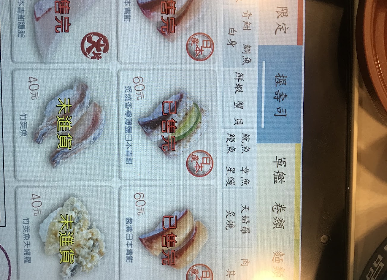 價格比爭鮮等還貴,註名40元但裡面的價格都不一樣,圖片和真實的相差甚遠,拿食物容易拿錯,點餐的板子自動顯示沒電