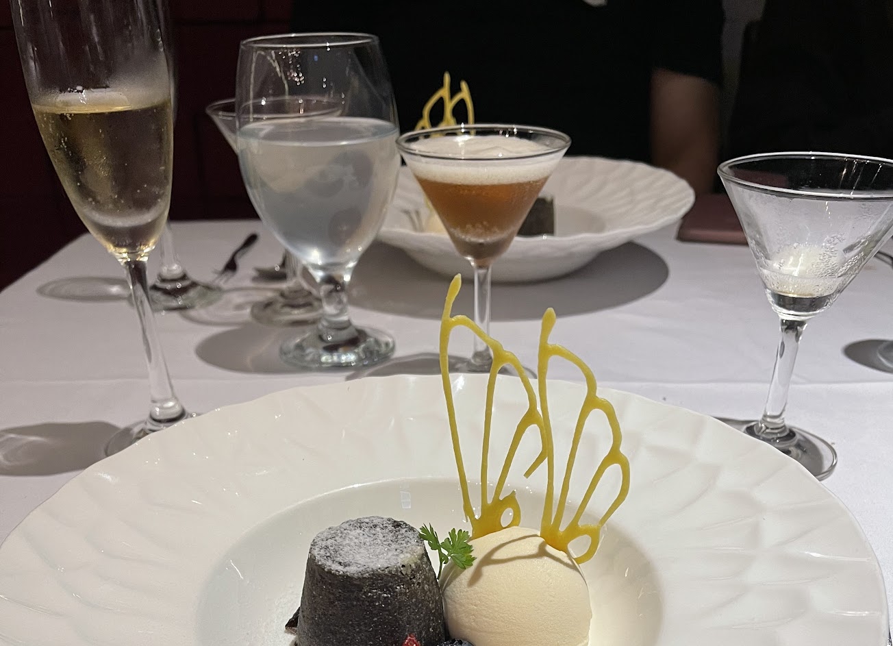 服務與環境都不錯,香檳跟檸檬水都好喝且解膩 前菜跟湯品份量適中,畢竟主菜份量不少 麵包搭配鹹奶油跟肉醬都有提升味蕾效果 起司莓果豬肋排:瘦肉部分口感偏柴、乾,儘管服務生熱心取回給廚師加醬加熱,口感一樣乾柴,讓人不想再多吃(其餘有油脂部分就好咬且好入口) 雛牛菲力肋排:菲力肉有點不夠嫩,偏6-7分口感,肋排還算可以,只是要啃咬一些地方比較麻煩 甜點:冰淇淋熔岩巧克力、紅玉珍珠閃電泡芙都好吃,不會太甜膩,各有特色 飲品:氣泡咖啡喝起來口感跟層次很棒,果汁也好喝,不是加一堆水的口感 生日送了生日蛋糕,可惜蛋糕質感非常廉價且不美味,讓整體素質下降了(雖然是贈送的,但很像傳統蛋糕店的基本蛋糕)