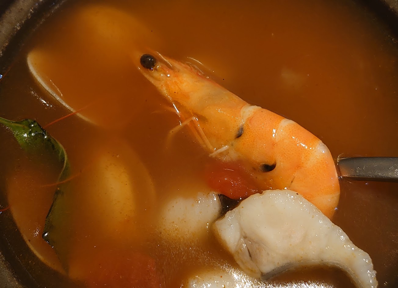 海鮮湯蝦子不新鮮,口感糊狀,有當場向店家反應。