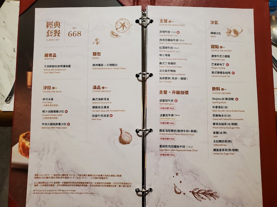 等待餐點的時間也相較其他店久,吃完前菜等了很久才來下一道菜,後來主餐上了,我當天是點原塊牛排七分熟,主餐上菜後我跟服務人員說我需要炸蒜片,他說他們沒有提供炸蒜片,後來我就跟他說我在龍潭店用餐的時候他們每次都有提供,後來那個店員又說,那個是陶板屋才有提供蒜片,只要是西堤的門市都沒有提供蒜片。