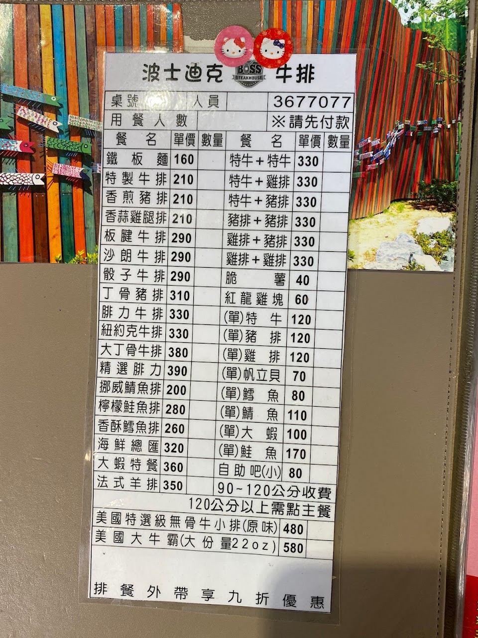 2024最新在地推薦餐廳的菜單_波士迪克牛排館(8/30店休)的菜單、圖片