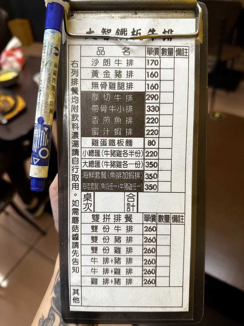 菜單裡有厚片牛排可點。那價格若再加100多,是可以去貴族或我家吃配餐吃的飽了。