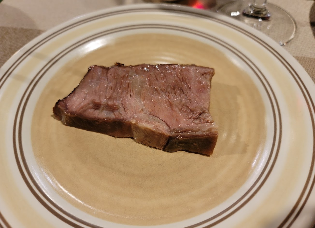 慢烤帶骨牛小排 – 從外側到骨邊分成三塊出餐,不同部位間油花比例與肉質的變化很有趣。口感軟嫩甚至帶有燉煮牛肉的感覺也與一般牛排不同。