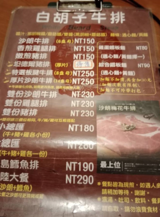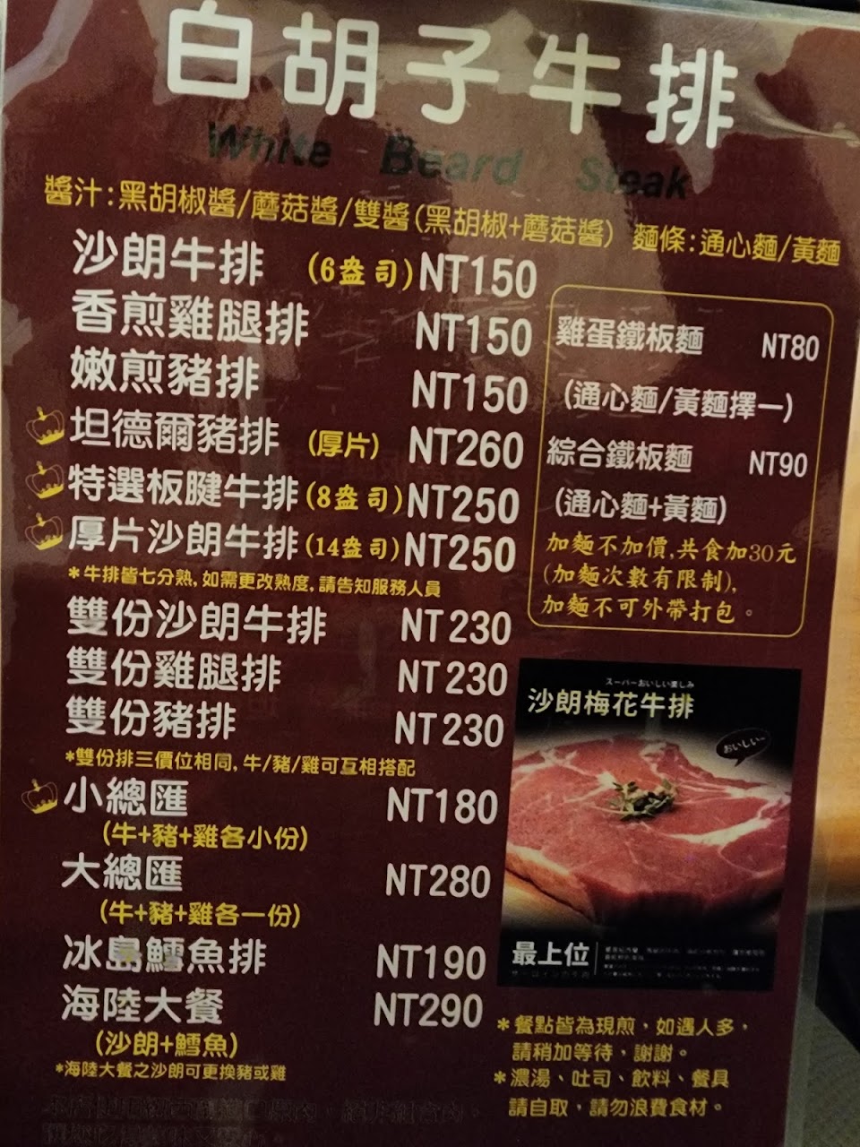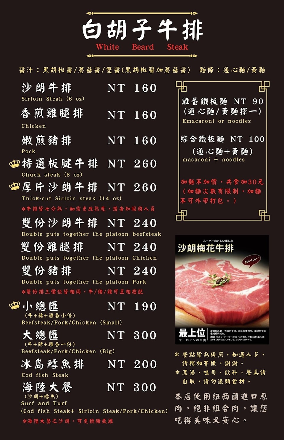 2024最新在地推薦餐廳的菜單_白胡子牛排 桃園桃鶯店的菜單、圖片