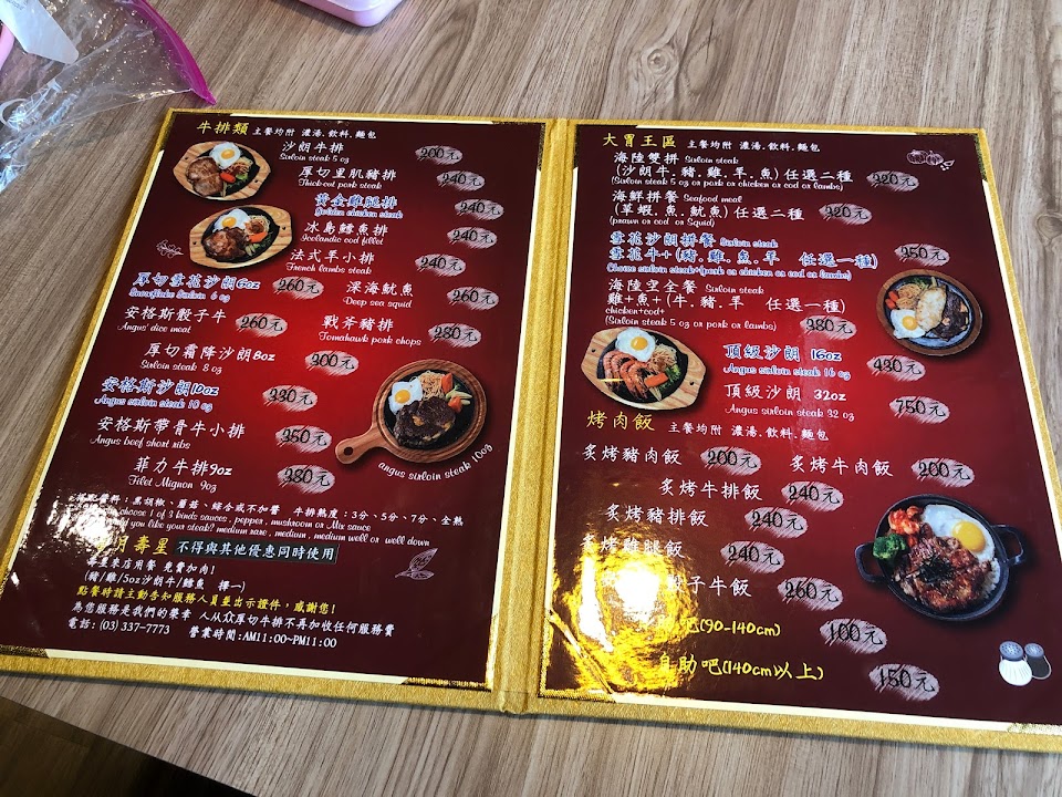 平價台式的牛排館,肉質偏軟應該是有先醃過。份量不錯,沙拉吧的部分選項偏少,當日僅提供生菜和苜蓿芽及小黃瓜玉米和葡萄乾。有烤箱可以烤麵包和飲料吧、爆米花機還有冰淇淋。整體而言還算不錯。週六日還有限定的牛肉湯品,味道濃郁但胡椒有點太重口味。且週日晚上去的時候,可能是服務人員太少,點餐到上菜都花了點時間,但無傷大雅。這個地方蠻適合家庭聚餐或三五好友沒事來吃吃牛排。