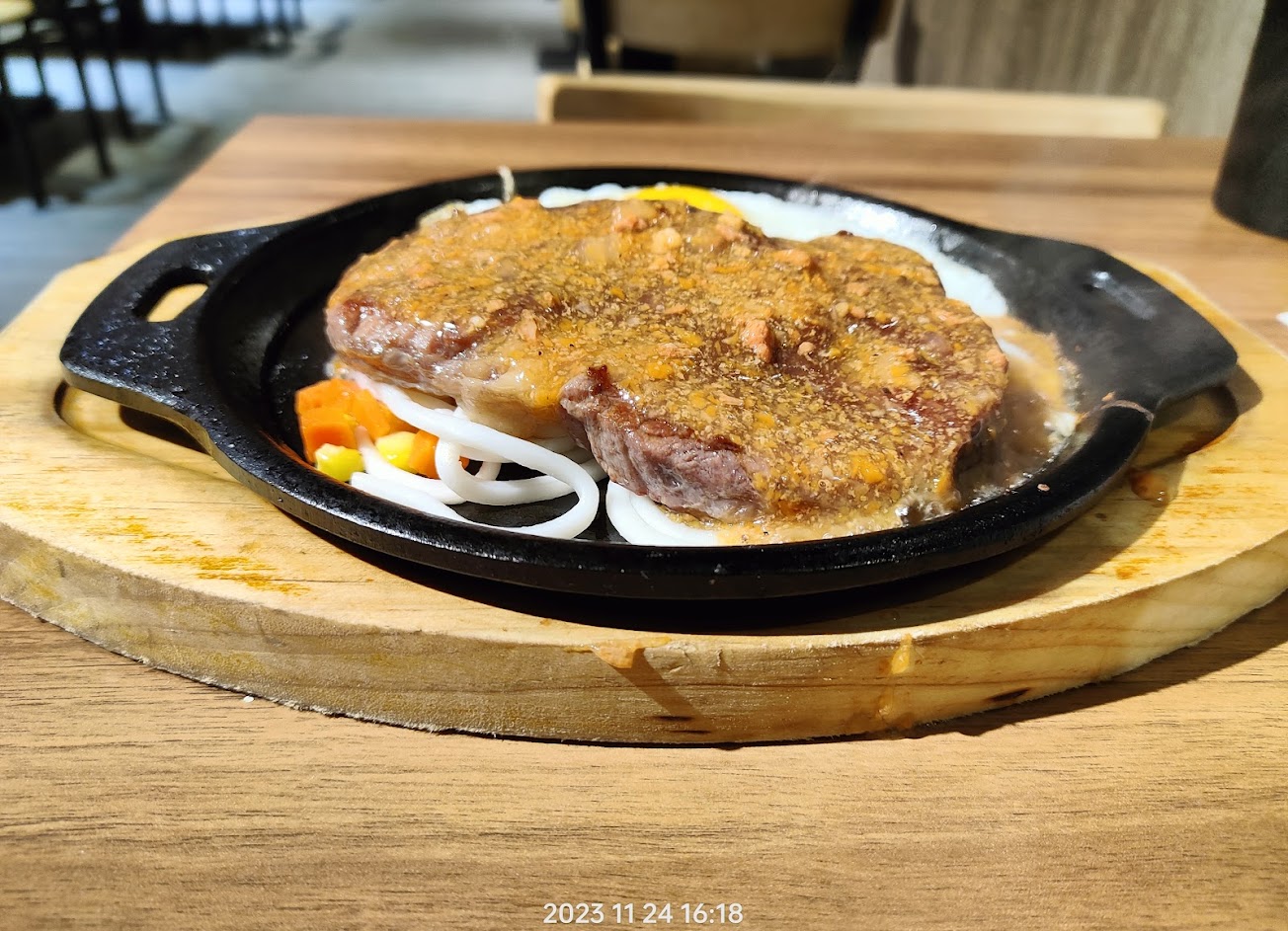 排餐唯一推薦豬排,牛雞都不行。鐵板很不熱、蘑菇醬非常悲劇難吃,勾芡超厚一坨。自助吧種類少都是便當店小菜等級,只推薦滷肉飯和鴨血豆腐。花個200多基本排餐吃個粗飽可以。水準大概是比夜市牛排好一點,但差我家牛排很多。