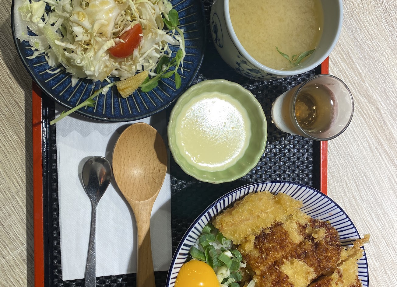 食物方面先不論炙燒鮭魚上面的焦糖美乃滋有多甜, 丼飯本身都吃得到乾掉的硬飯粒, 甜點的雞蛋布丁?口感就是用現成的雞蛋布丁粉做的,各種乏善可陳。
