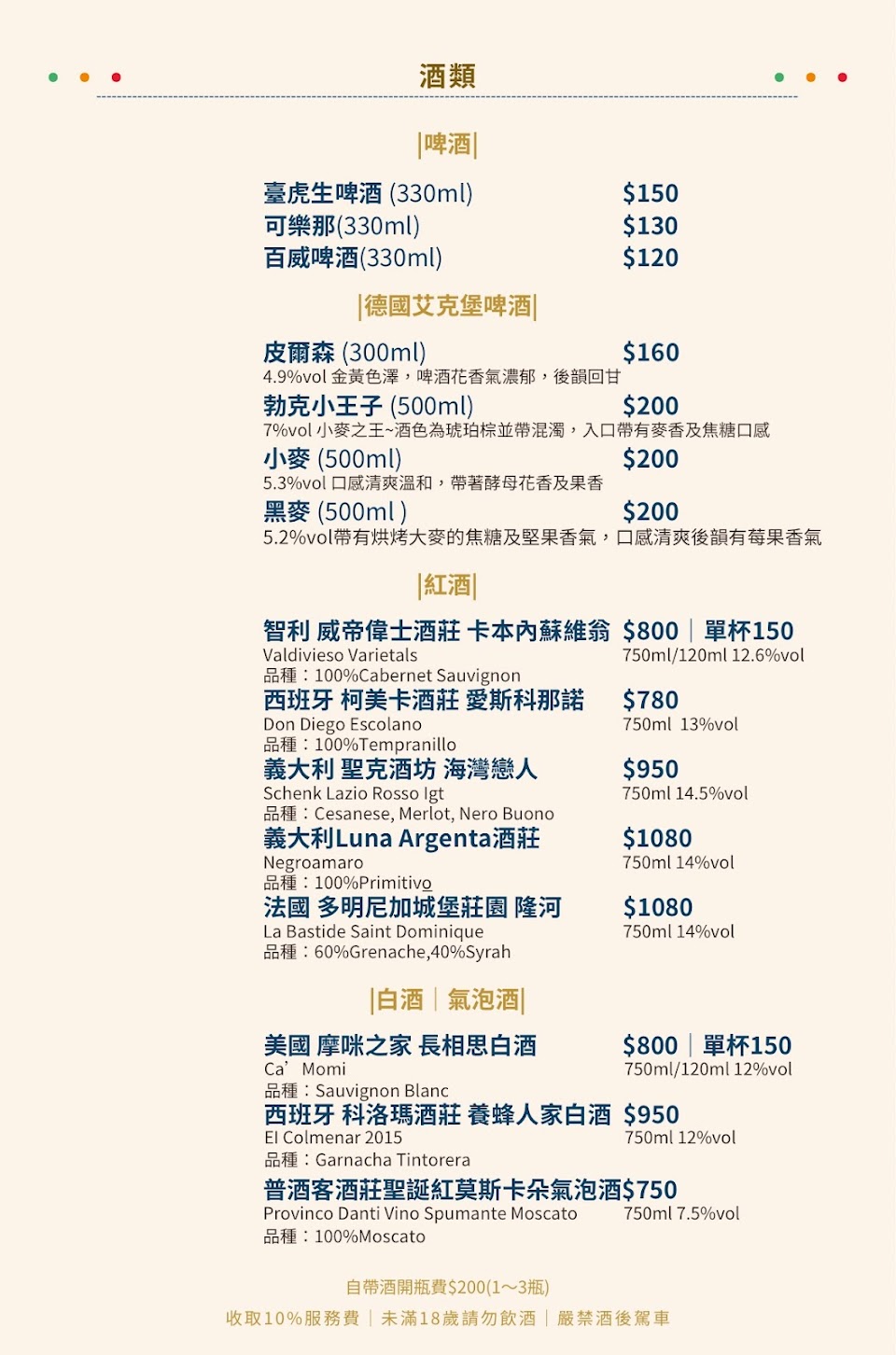 2024最新在地推薦餐廳的菜單_漫嚼MANGIA義式餐廳|全天候供餐|寵物友善|不限時用餐|大包廂|商業午餐|藝文特區的菜單、圖片