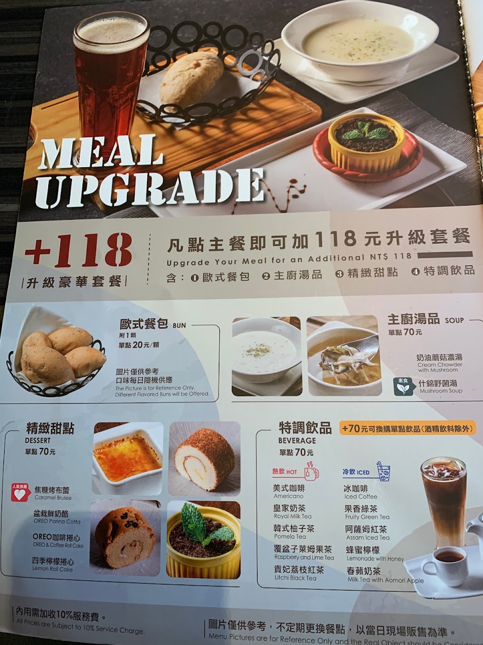 (打卡評論可以送開胃輕食3選1)目前享用到的餐點是加價98元套餐的湯品和餐包,口味都很不錯!