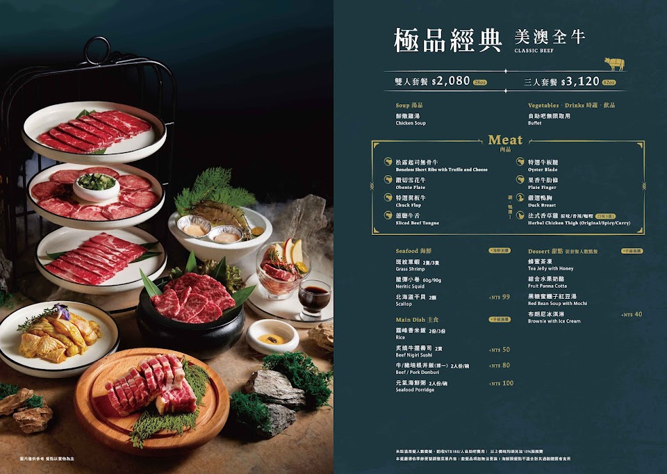 牛肉套餐, 松阪豬, 菜盤, 生菜沙拉, 伊比利梅花豬肉片, 雙人 套餐
