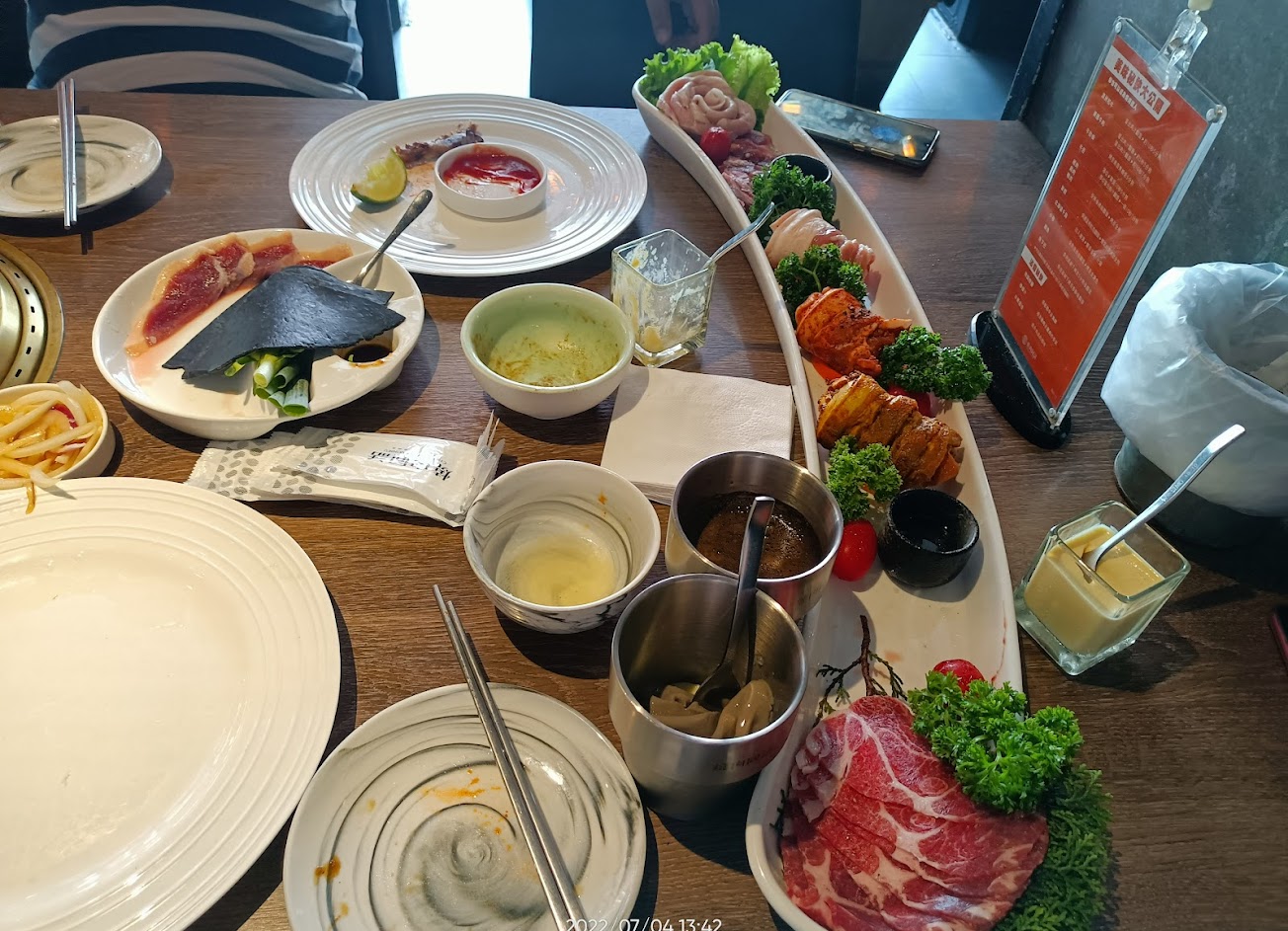 肉品很不錯,海鮮也沒有怪味,服務員動作快且熱心。 不過疫情期間廁所竟然沒有放酒精必須得扣一分…。