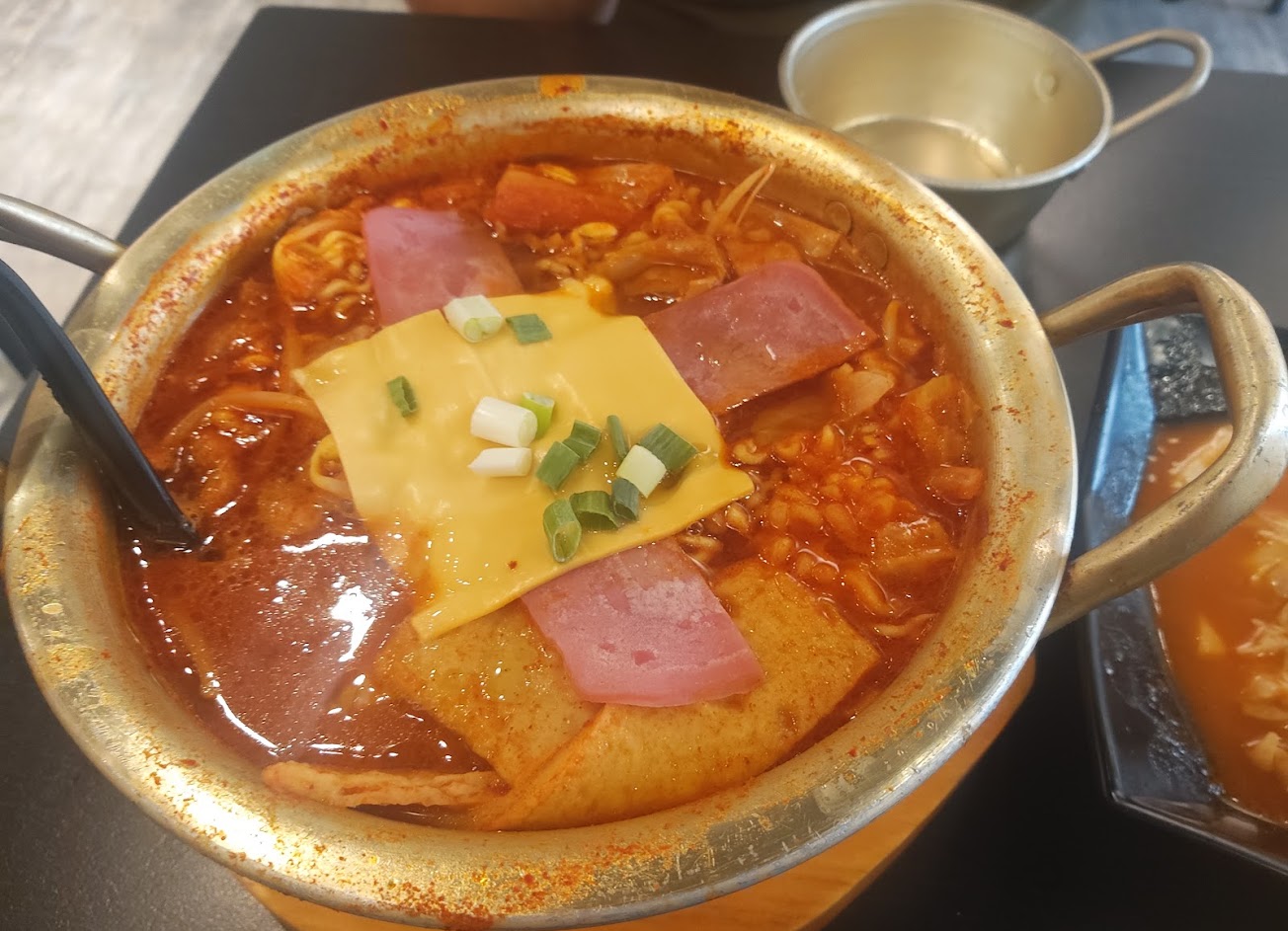 環境:水壺(出水口破掉易藏污納垢)、餐具、桌子都黏黏的 餐點:明太子石鍋拌飯黏黏無鍋巴、部隊鍋湯頭很像泡麵水加太多也沒什麼料,高麗菜口感很生,辣炒年糕偏鹹且完全不辣