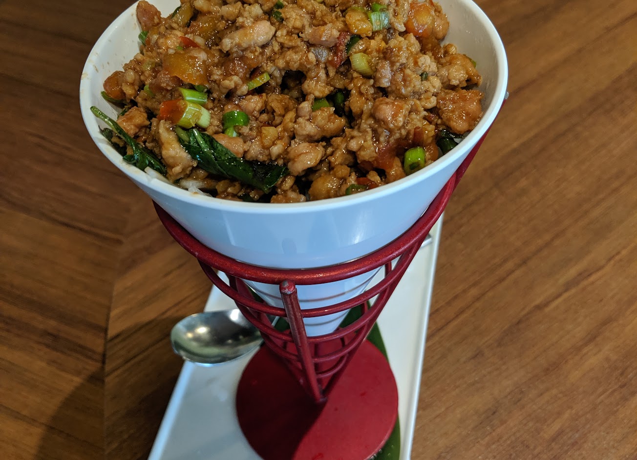 我們點六人套餐 1. 服務貼心,點菜過程中有略略提到朋友懷孕 ,在上菜過程 有特別提醒有的小菜有些孕婦會避免 讓孕婦斟酌食用 2.月亮蝦餅 超厚 吃起來超有感? 3.綠咖喱 紅咖哩 都好吃好下飯 4.蝦醬空心菜 嚇人的大盤 6.涼拌雞 好好吃呀 不太辣 總結 不吃太辣的我 覺得口味蠻剛好的 吃了超多碗飯 推推