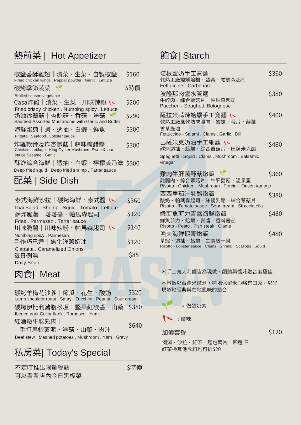 2024最新在地推薦餐廳的菜單_Casabistro饗家小餐館 義大利麵 燉飯 餐酒館的菜單、圖片