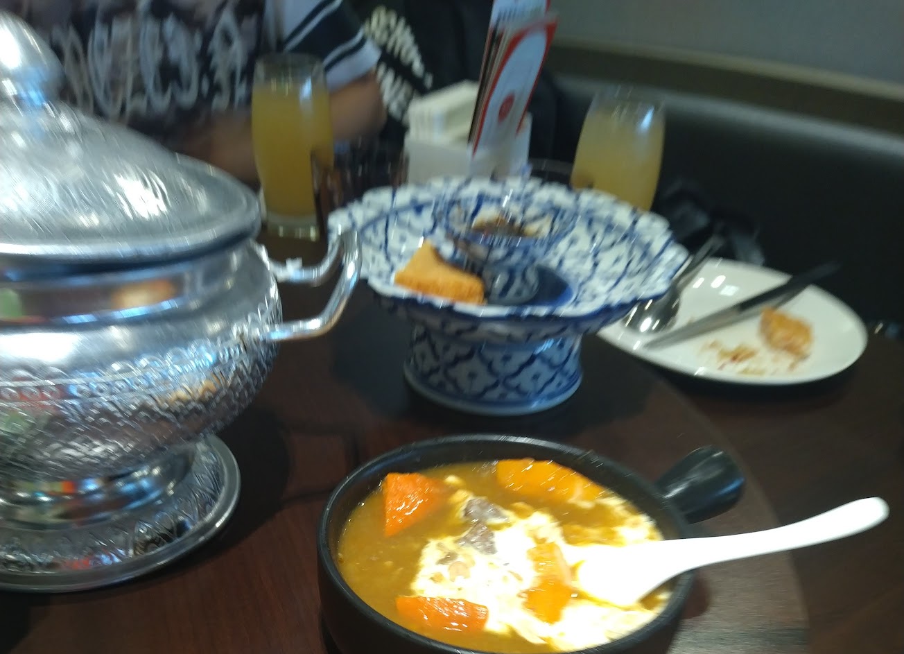 假日一點後才能訂位不過都有位子,地方寬敞,蝦醬空心菜好吃,月亮蝦餅比一般厚,酥炸豬五花尬女婿蛋比較台式一點,東北淚之虎是烤牛肩但佐泰式的醬料,好吃新奇的口感,白飯中規中矩,泰式奶茶也不錯但小杯,整體而言算是雖然高價(單點,1650/2人)但值得的一餐。跟瓦城比較,瓦城價格比較理想,饗泰多蝦醬空心菜略勝一籌。