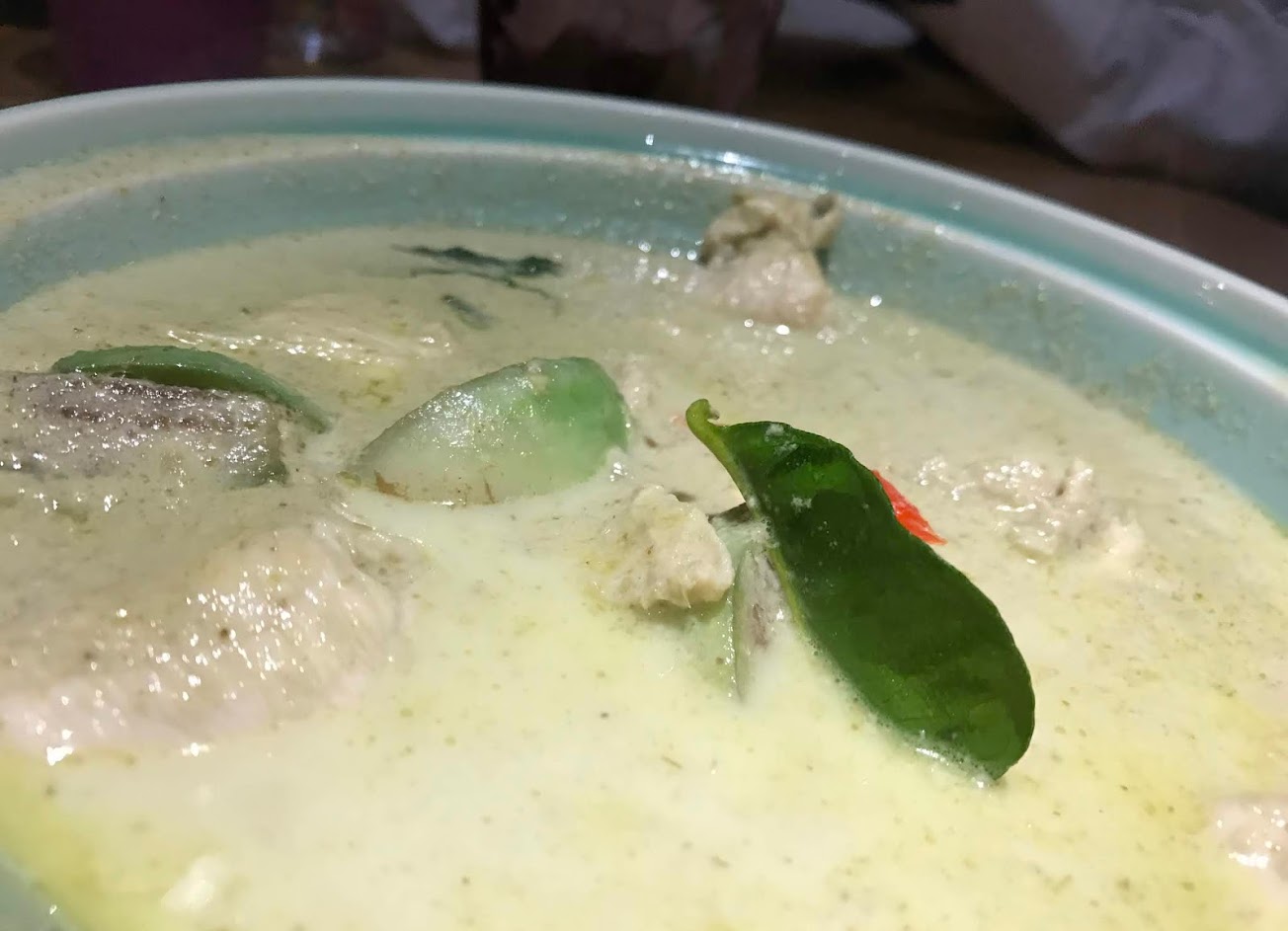 帕能咖哩燉松阪:走的是重口味,濃稠偏鹹,好不好吃就看個人了,比起一般在台灣通俗常見的泰式咖哩,口味重很多,配很多飯還是略鹹,後來打包回家加鮮奶再煮過口味才比較習慣。裡面的松阪豬肉片也是很大方給很足。