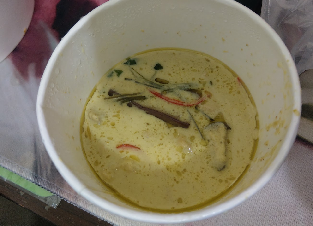 在店裡吃覺得綠咖喱吃起來苦苦的,想說可能是我吃了什麼其他的味道衝到,就打包回家,回家熱來吃,味道一切都正常。