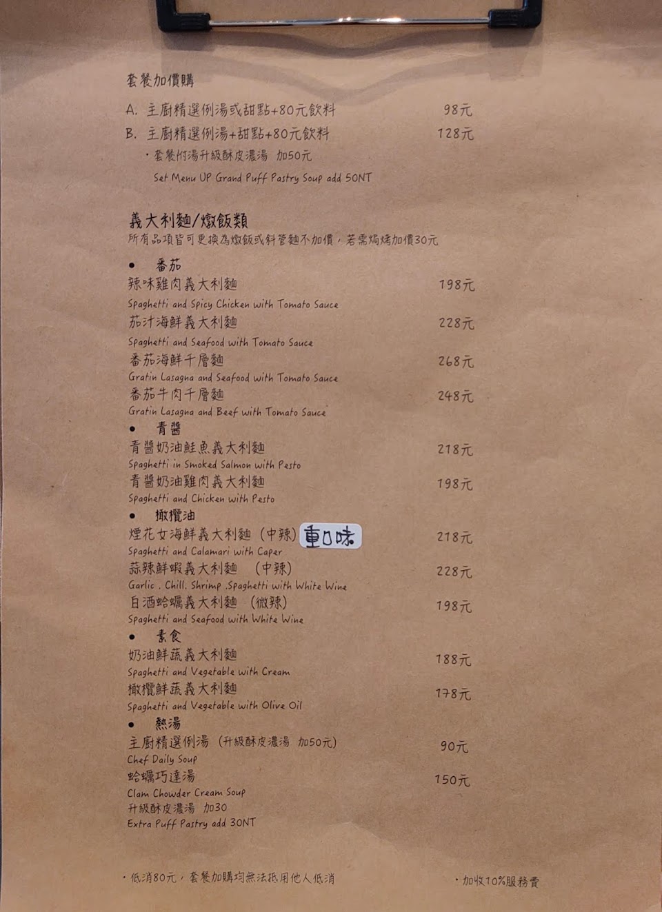 依價位來看,義大利麵的口感是我覺得最好的,保有麵條的咬勁,不像一般口感偏軟偏爛