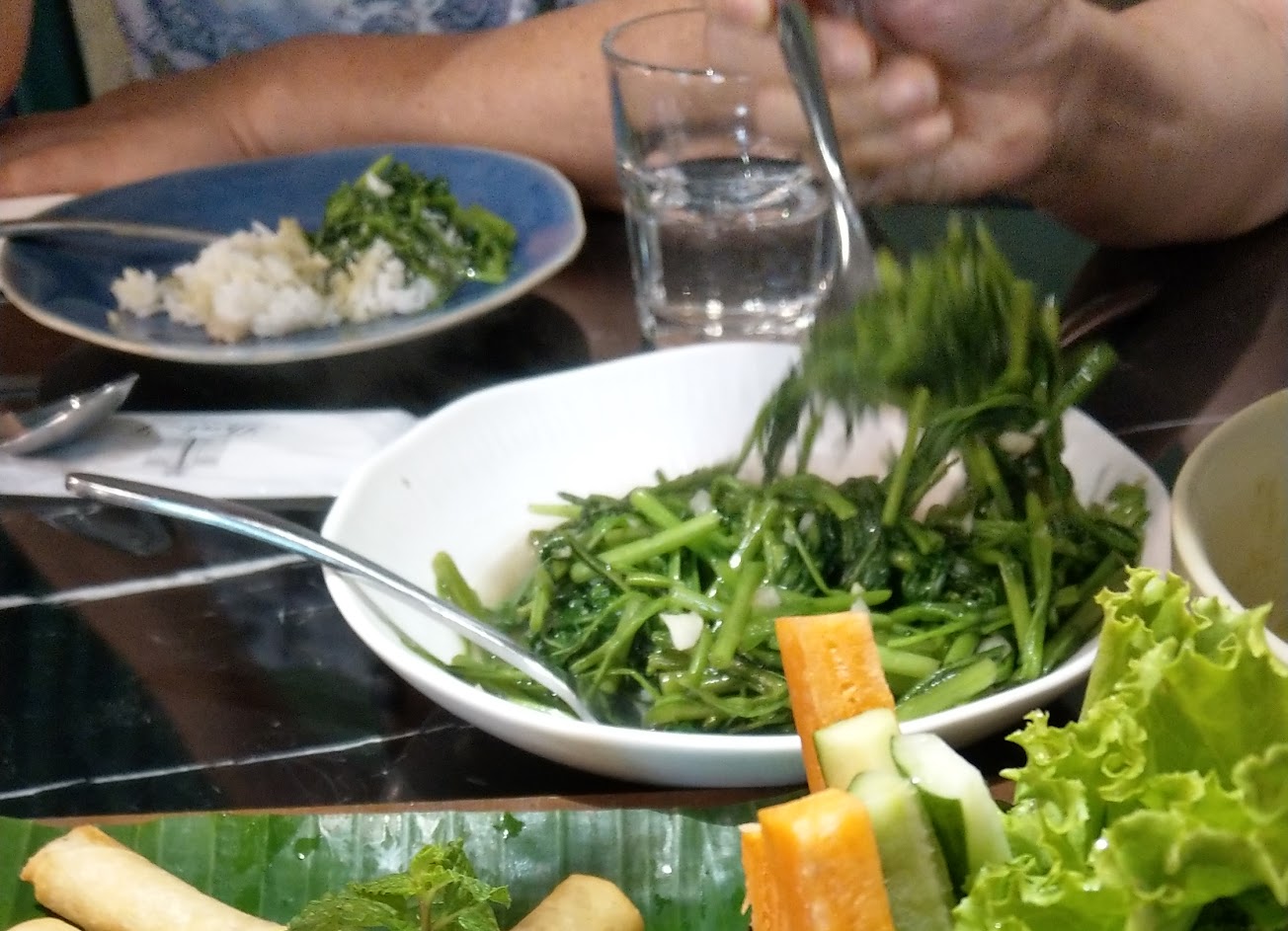 打拋豬放了過多的綠辣椒(我點不辣的口味),而且味道很死鹹,不管怎麼配飯還是覺得苦鹹,很膩而且讓人口乾舌燥整個下午,怎麼喝水都還是覺得不舒服(應該是不小心放了過多味精),並且吃到沒挑乾淨的蒜頭皮。