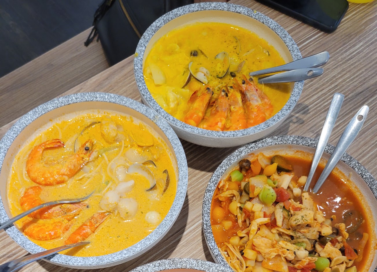 沒想到好好吃,湯很濃郁咖喱一點微辣但是好吃 ,蝦子、蛤蠣、魚肉都很新鮮鮮甜,豬肉也不柴很嫩很Q彈好吃!!用料很實在,其他的香菇和丸子也都好吃,番茄的味道也很棒甜甜的番茄味也不會過痠真不錯啊?,飲料的調配也很好喝喔 不會很甜剛剛好,味道也很香,整體體驗很棒!