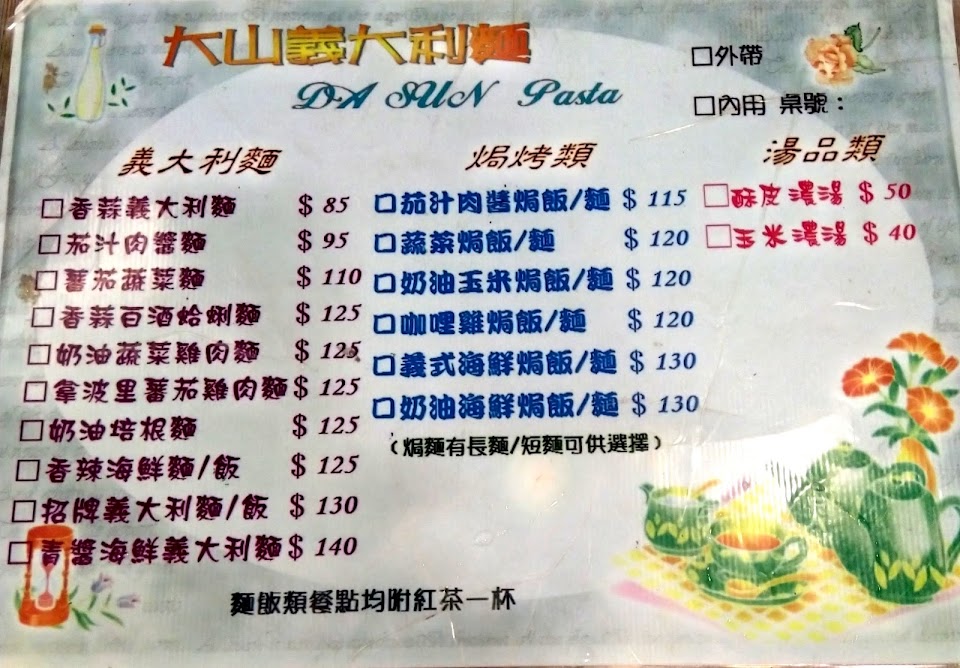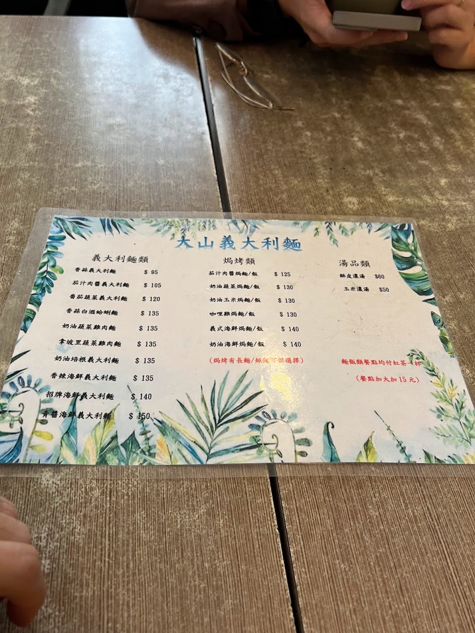 2024最新在地推薦餐廳的菜單_大山義大利麵的菜單、圖片
