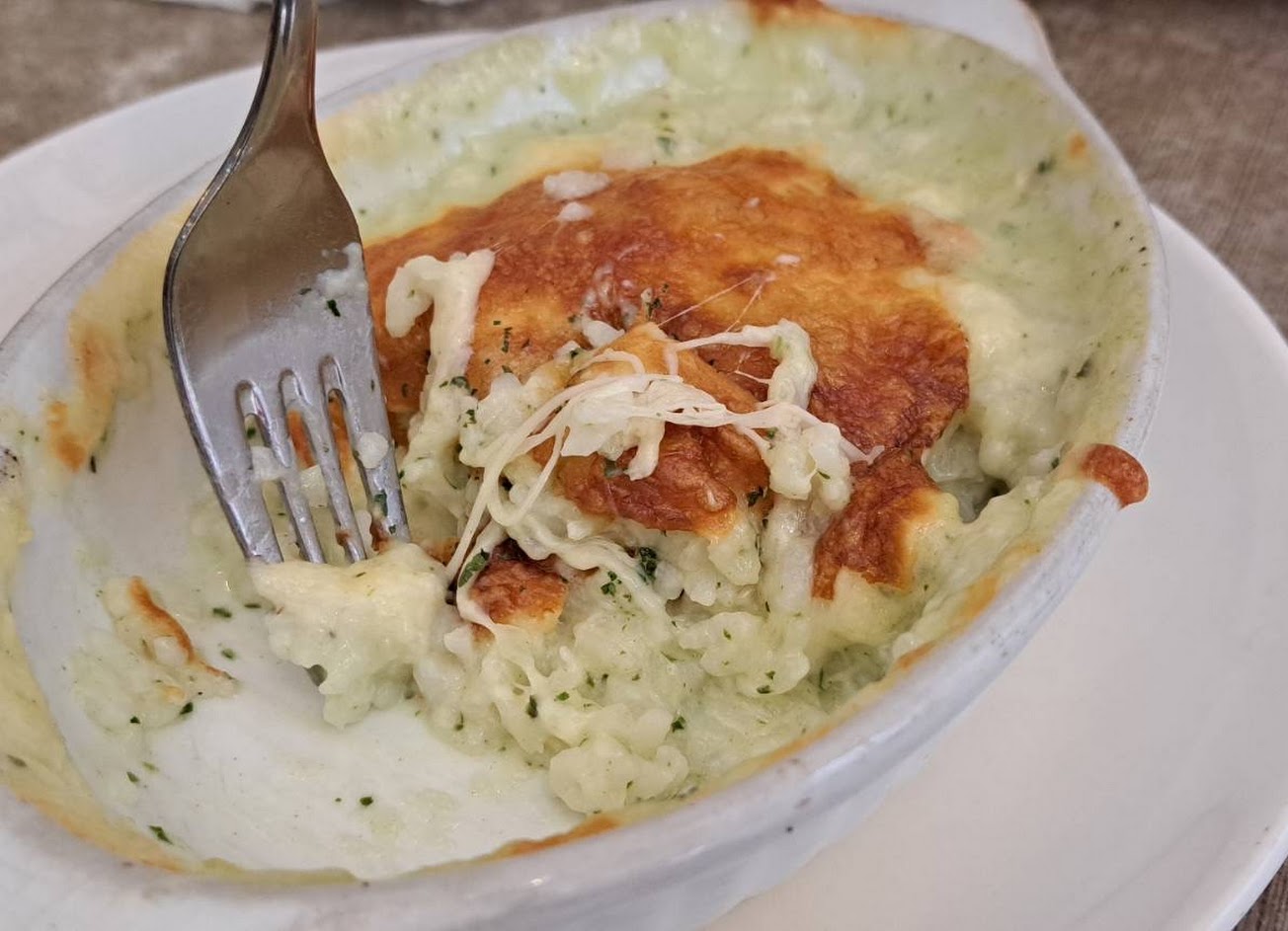 吃到快完了忍不住上來評論….實在是太好吃了!!我點焗烤海鮮麵,其他家人點蒜炒跟紅醬,也都說很好吃!扣一顆星是因為實在要等好久…店內空間小,冷氣有跟沒有一樣,就算打電話預訂還是要等一陣子,不過這價錢真的超佛,CP值高是最大賣點(又好吃)