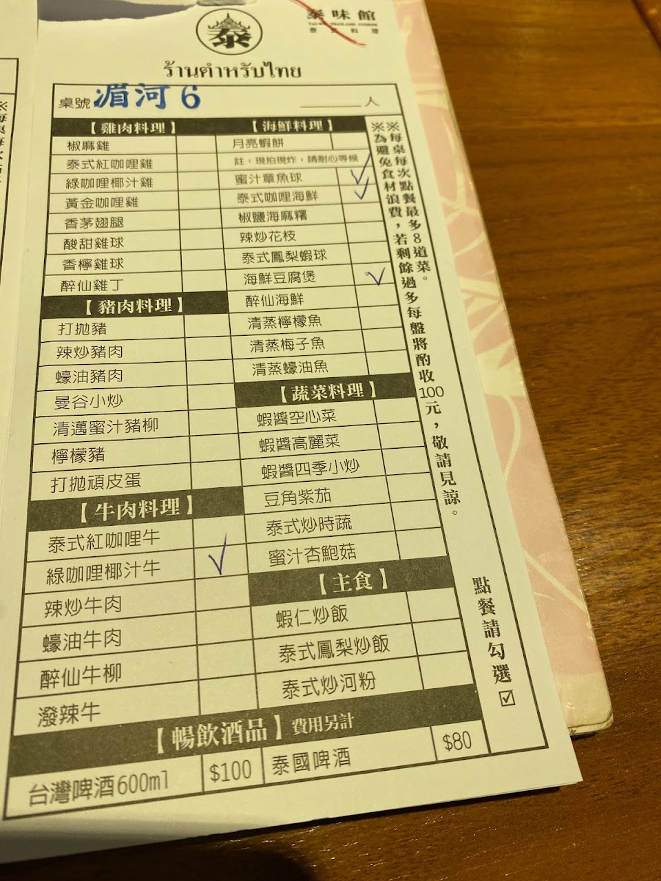 接觸泰味館已經很多年 以前覺得價位合理 餐點好吃 所以家族聚餐常是我們家的首選之一 但最近再去發現 菜單選項跟以前相比少了很多內容 連點心奶黃包也消失 泰式檸檬魚也只給半邊 並沒有一整尾 結帳時卻發現平日午餐2人帳單含服務費竟然要1500多元 …… 貴的離譜