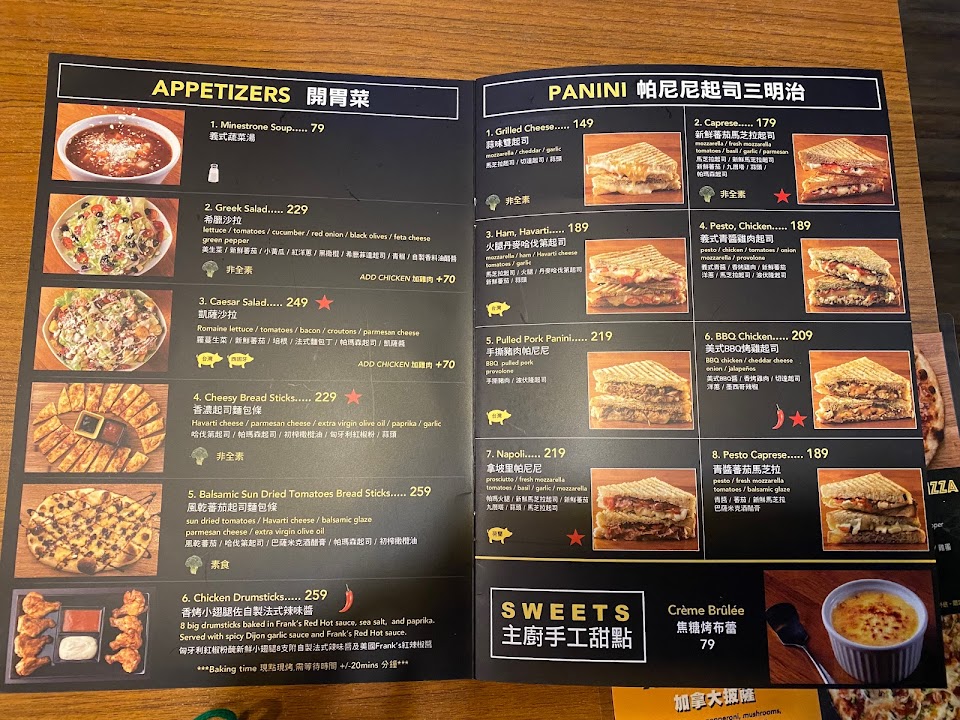 店面很大,有兩個樓層,不用怕沒位子可以坐。冷氣沒很涼,但是有開電風扇加強空氣流通。送餐速度很慢,我們點餐後約等2-30分鐘才拿到。八吋pizza價格都209左右,12吋則約莫300元。