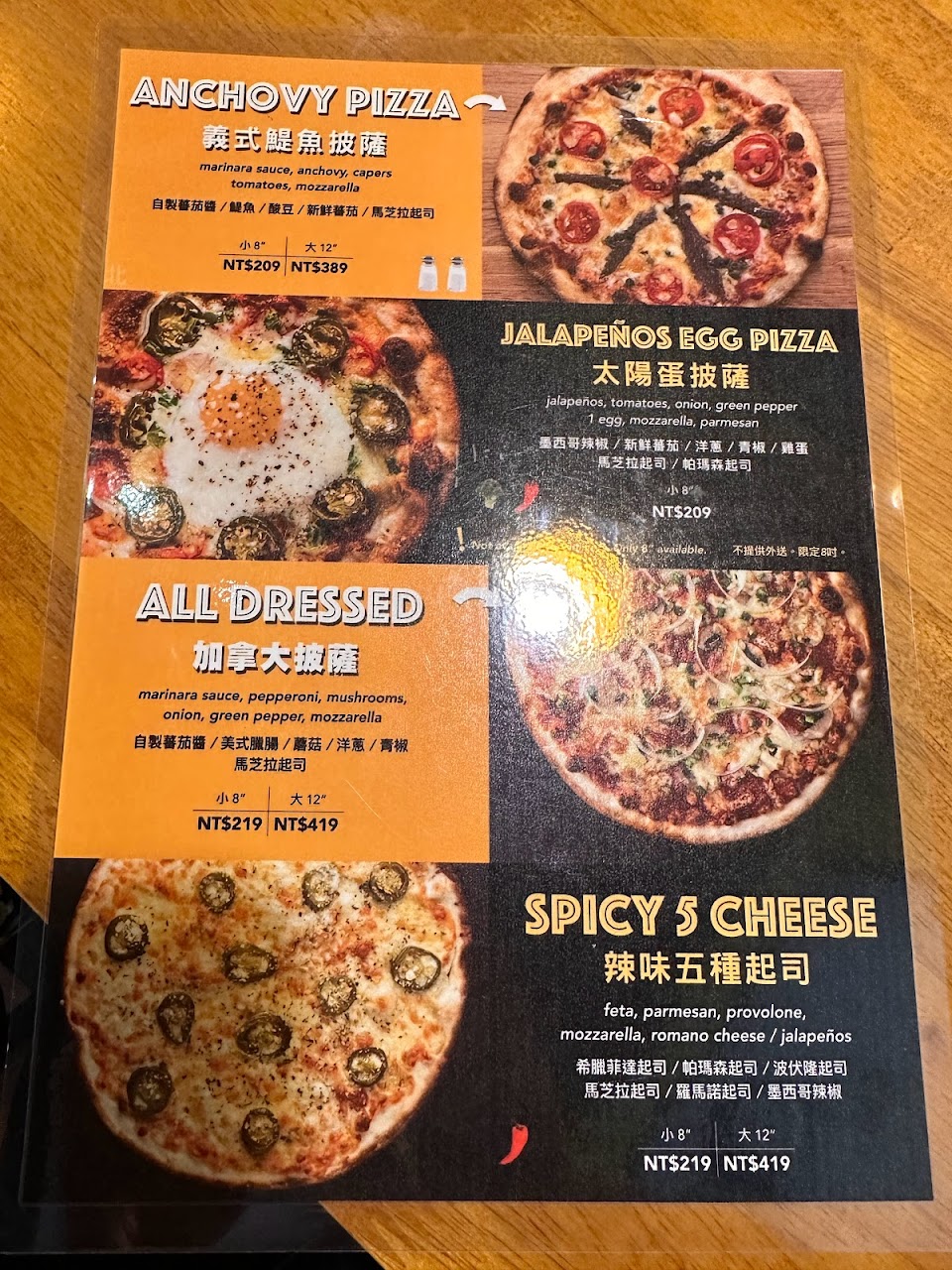 Pizza口味超多,有8、12吋可以選擇,人多人少的聚餐都很適合!!