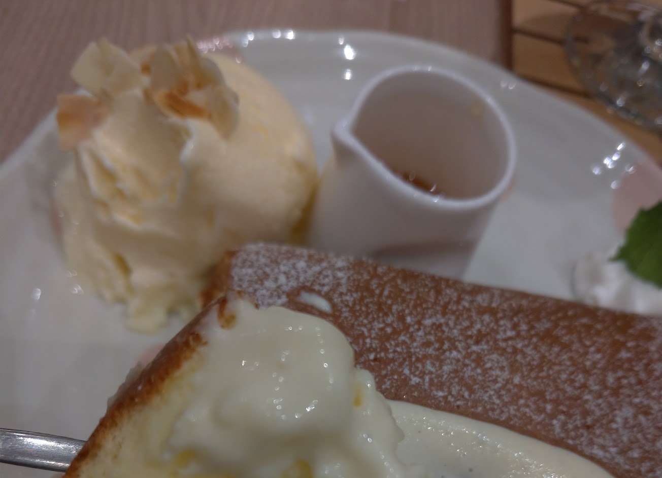 我們點了唐揚雞咖哩跟蒙布朗鬆餅。咖哩很香很美味,口味偏甜帶一點點辣,唐揚雞也炸的很酥脆,唯一缺點是雞只有三塊。鬆餅意外的很好吃,奶蛋的味道很重、香氣足夠。