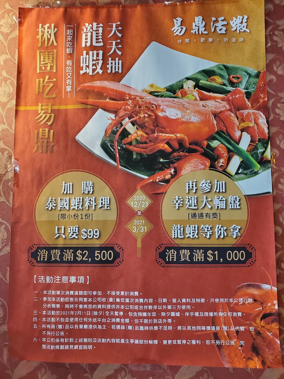 疫情期間只能外帶 希望趕緊渡過 恢復像以前一樣 和家人可以再到易鼎聚餐 一起加油