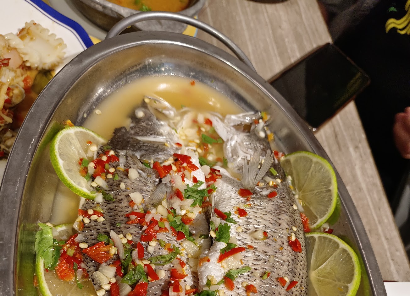 好吃的:檸檬(或梅子)魚、香茅雞翅(點餐台寫雞腿…,但好吃喔)。然後其他我覺得沒了(雖然我也沒有全部點到) 最嚇到的是自取生蝦部分,一整個還結在一起就放上吧台…建議取消自取,也納入點餐。 最後點餐部分也是,不知是否廚房要湊單一起做,點了幾道菜久久未出(但看點餐清單已全部出菜),直到最後用餐時間快結束了…才一股腦兒都來了