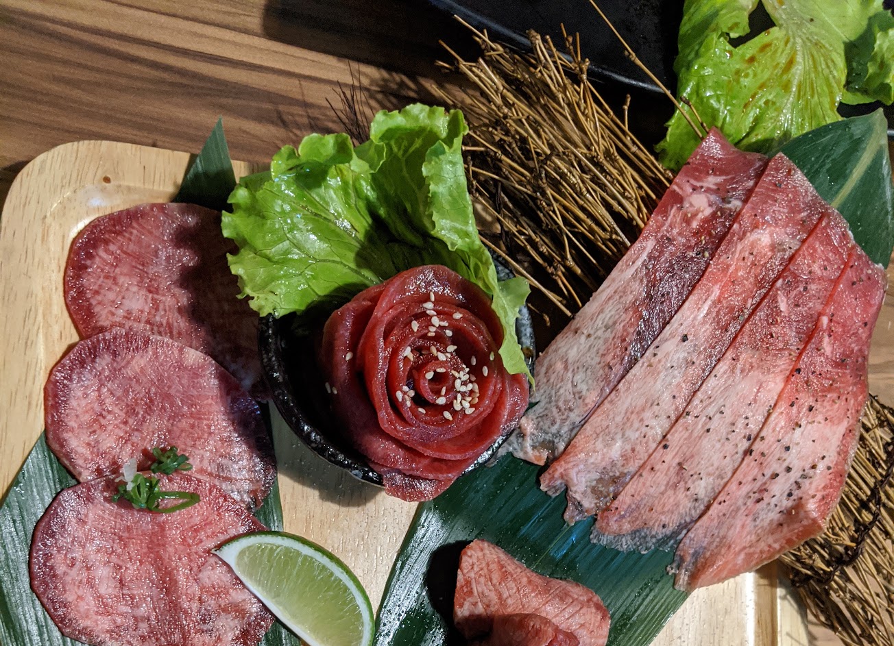 除了牛舌七吃比較值得之外,其它肉質雖還ok,但份量略少,5個人點了三人套餐加牛舌七吃再單點六盤肉約四千初頭,有雞湯可以喝,鹽蔥醬很油但沒有鹹味,燒肉醬的甜味不夠,海鮮拼盤的草蝦沒有彈牙,整體來說食材檔次普通,想吃牛舌的可以吃。