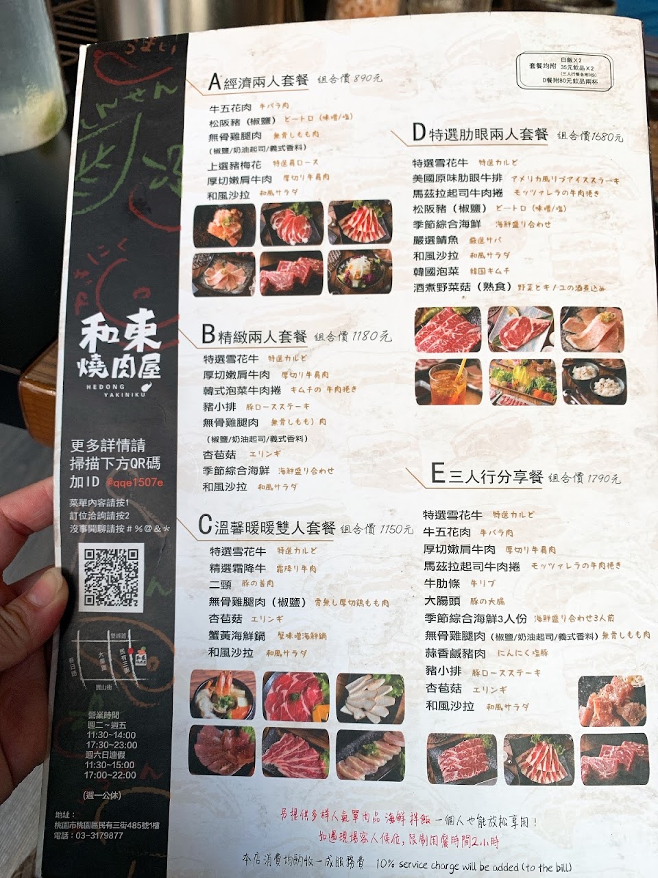 點了雙人套餐加單點 結帳兩人1800多 結論就是完全不值得 沙拉中規中矩 飯很濕軟黏膩感覺像是隔夜飯微波加熱 牛肉肉質一般 雞肉沒退冰上菜都還是冰凍的。 泡菜有點苦味..量販店賣的都比較好吃.. 牛舌薄到快透光..大腸一堆小碎腸… 出餐順序很亂 中間還漏單 … 只能說單點店的價格 品質比吃到飽還不如。 更不用說完全沒有任何桌邊服務 第一次吃燒烤沒換過烤網..吃到一半炭火完全快熄了 服務人員也從沒關心過..感覺就是上完菜就沒事了.. 現在餐飲業者競爭這麼激烈希望老闆多去觀摩其他連鎖燒烤店是怎麼經營的。 不然像我這種路過的散客真心不會再去第二次。 強烈建議想吃好吃的燒烤店桃園區有更多更好的選擇。