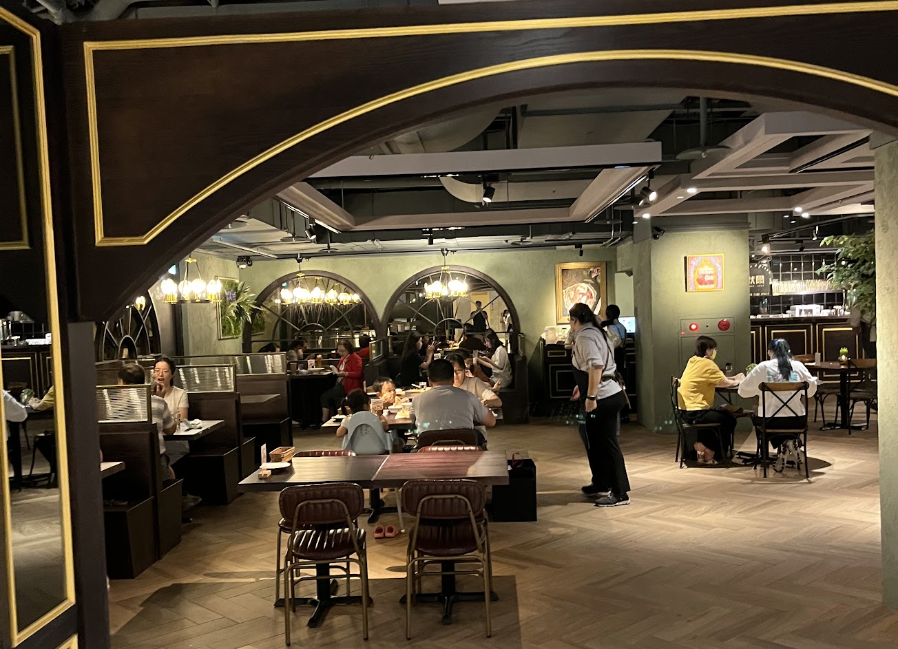 歐式復古裝潢展現高貴典雅美感,柔和光線浪漫優雅,寬敞的桌椅和空間相當舒適,義大利麵、燉飯與披薩都很推薦喔。 松露蘑菇燻櫻桃鴨燉飯:燉飯粒粒分明 略帶米心不失嚼勁,喜歡軟綿口感也可在點餐時告知,松露香氣濃郁,米粒完美吸附湯汁精華,加上巴薩米克醋的點綴,清新酸甜的果香提升風味層次,搭配肥美鮮嫩的燻櫻桃鴨和蘑菇,真是太美味了。 那不勒斯漁夫海鮮披薩:可以選擇番茄或大蒜醬,窯烤出爐的焦斑色澤十分迷人,披薩中間薄嫩柔軟,外圈Q彈有嚼勁並帶有微脆口感,海鮮用料超多,鮮美的海味與蒜香,不會搶掉餅皮的麵香,吃起來非常過癮。 明太子義式香料炸雞:炸雞外酥內嫩,擠上檸檬汁,搭配明太子醬,令人回味無窮。 蘋果果凍:果凍裡面有滿滿的蘋果果粒很有驚喜感,吃起來酸甜酸甜的,散發蘋果香氣。 飲品推薦蜜茶,使用天然龍眼蜜的蜜茶,清新蜜香、甜而不膩,入口會回甘而且清爽解膩。 服務 內用 餐點類型 晚餐 平均每人消費金額 $400-600