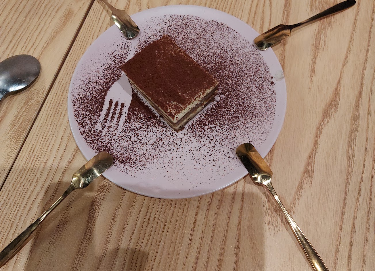 隱身在巷弄間的義大利麵點,用餐空間很舒適,餐點種類也算多元,這次和友人一起用餐,點的餐都很優~奶油培根義大利麵上面的半熟蛋很是驚艷,青醬雞柳義大利麵味道很青醬,海鮮焗烤飯海鮮料很多耶,麻辣牛五花義大利麵友人說很麻辣燙(味足),水牛城雞翅很軟嫩味酸甜,凱薩黃金蝦球炸的很酥脆,是小孩的心頭好,最最最意外的是提拉米蘇,不輸甜點店耶。有機會要再來試試其他餐點,目前吃的餐點都很滿意?
