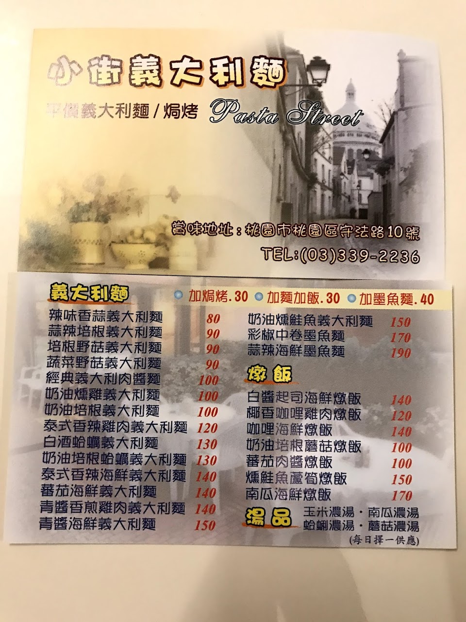 2024最新在地推薦餐廳的菜單_8/20(日)有營業 小街義大利麵的菜單、圖片