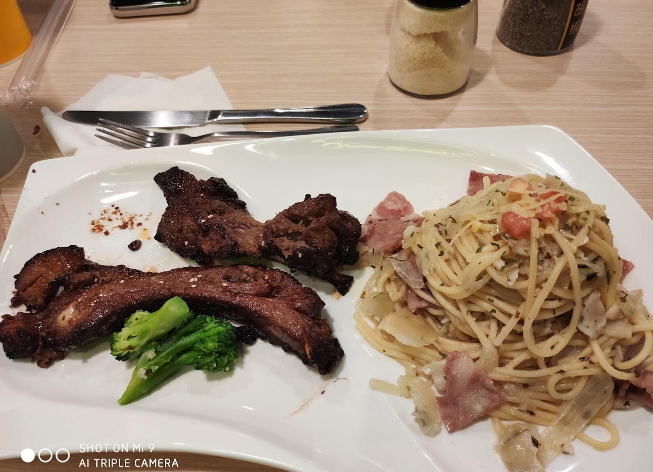 是間CP值滿高的一家店,用餐環境乾淨。 清炒義大利麵蠻清爽的,但麵條有點太軟了。