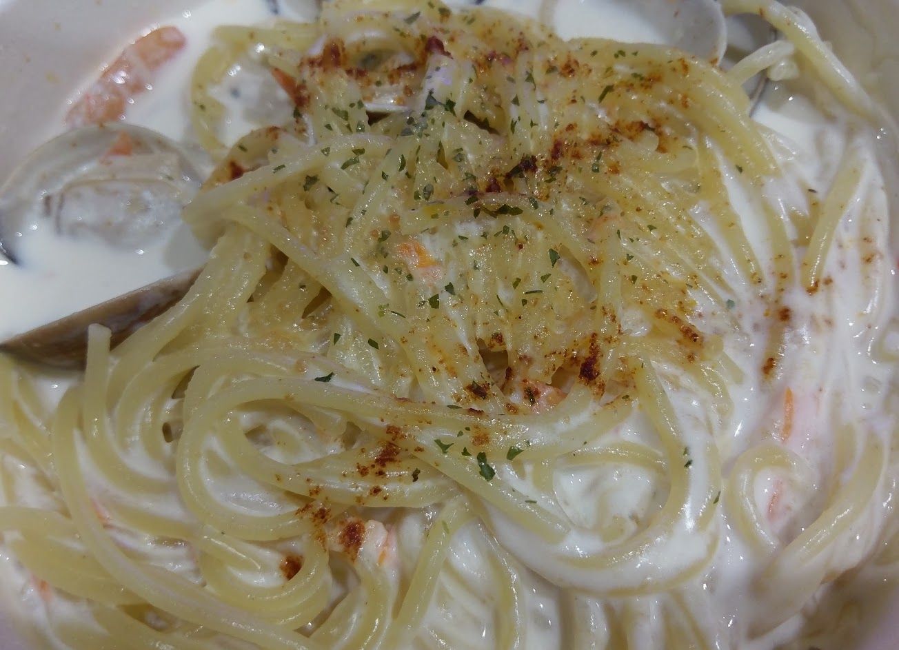 今天第一次叫外賣,麵份量足,但不知是否外帶的關係,麵體有點軟。白醬濃郁,紅醬偏甜,海鮮口味的蛤蜊很新鮮,蝦仁有開背,不會吃到沙,很好吃