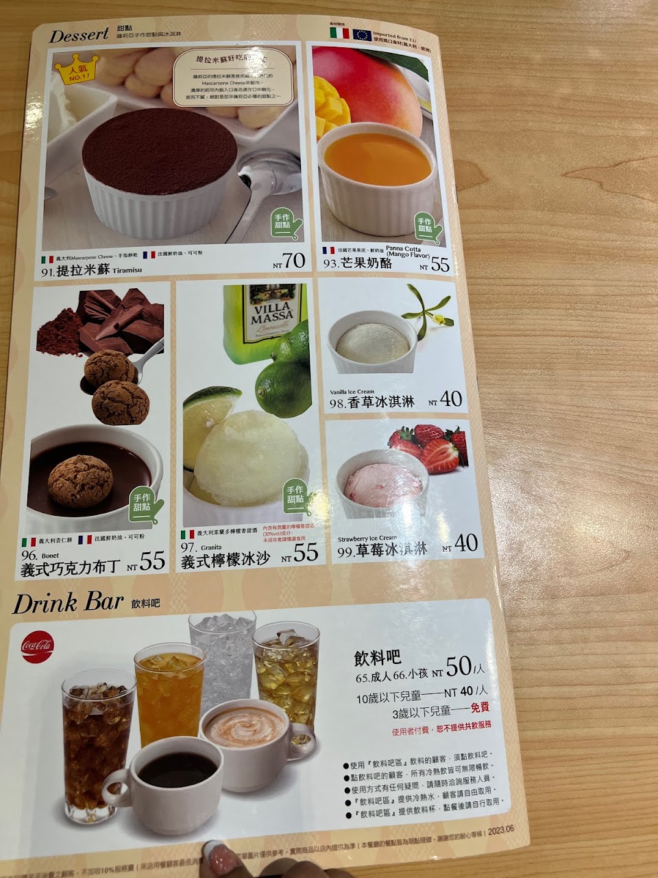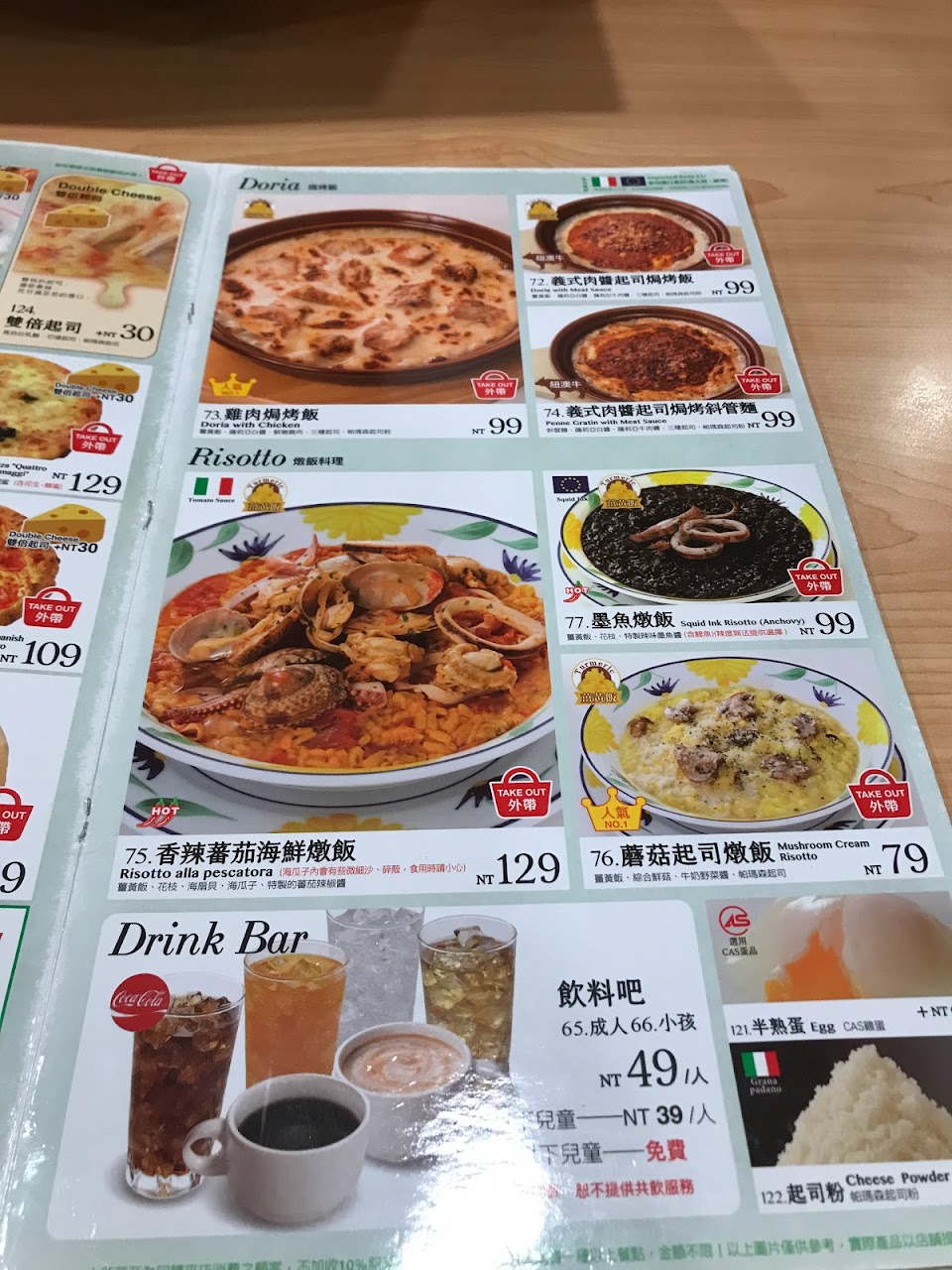 只能形容: 價格雖然很佛心 但東西鹹到爆了,還以為人在海邊喝到海水。 義大利麵完全像加了醬的乾麵,起司也是整顆給你吃 水杯的塑膠味道重到不行,希望改用玻璃比較妥當。 湯品送來基本上半冷半熱,所以要快點喝掉,不然冷掉像在喝水。 飲料跟湯品都是另收費,務必要注意免得被加收費用