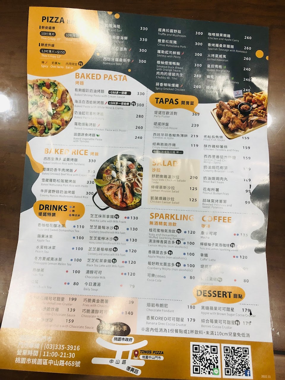 2024最新在地推薦餐廳的菜單_堤諾義式比薩TINO’S PIZZA Café 桃園中山門市的菜單、圖片