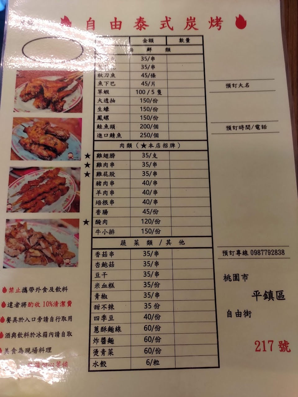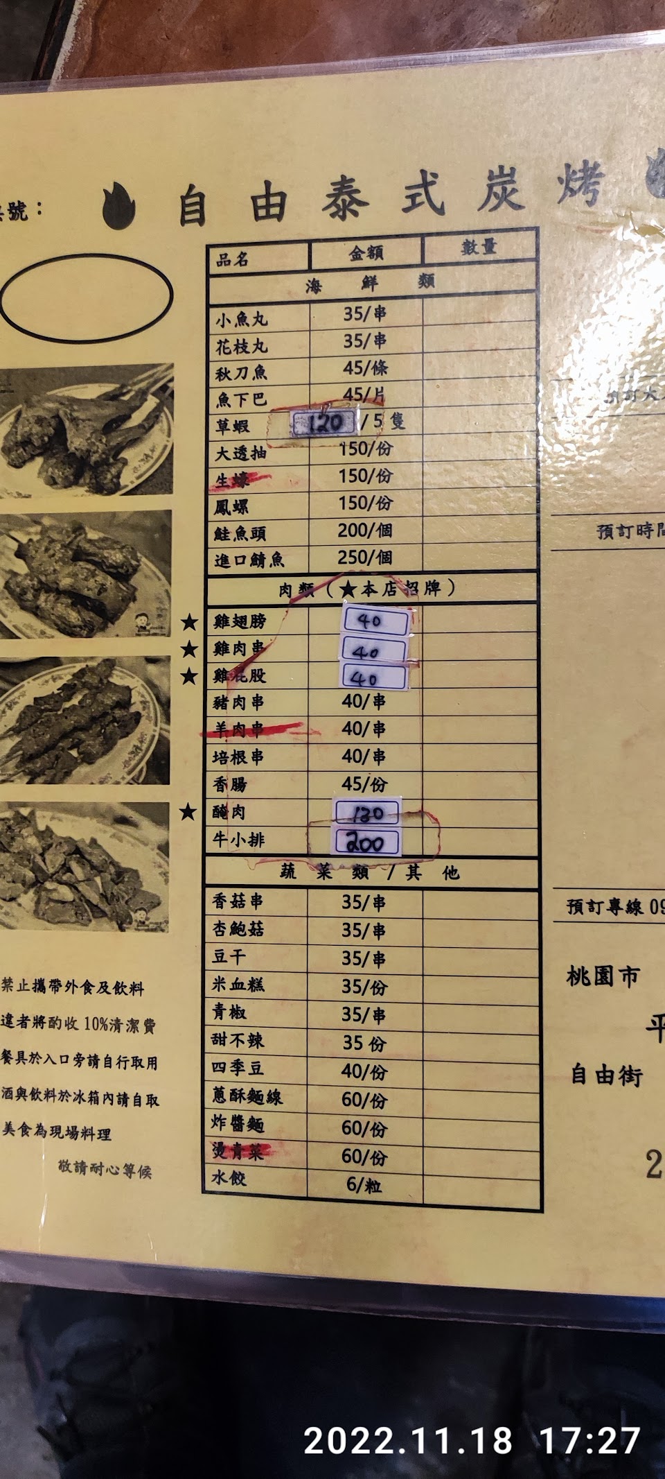 2024最新在地推薦餐廳的菜單_自由泰式碳烤的菜單、圖片