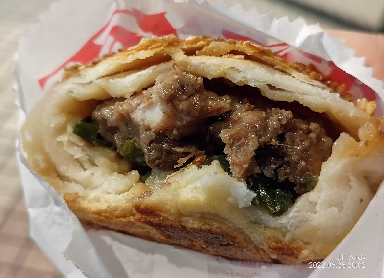 咬了第四口終於看到肉餡了,原來咬的部位是在餅皮較厚的地方