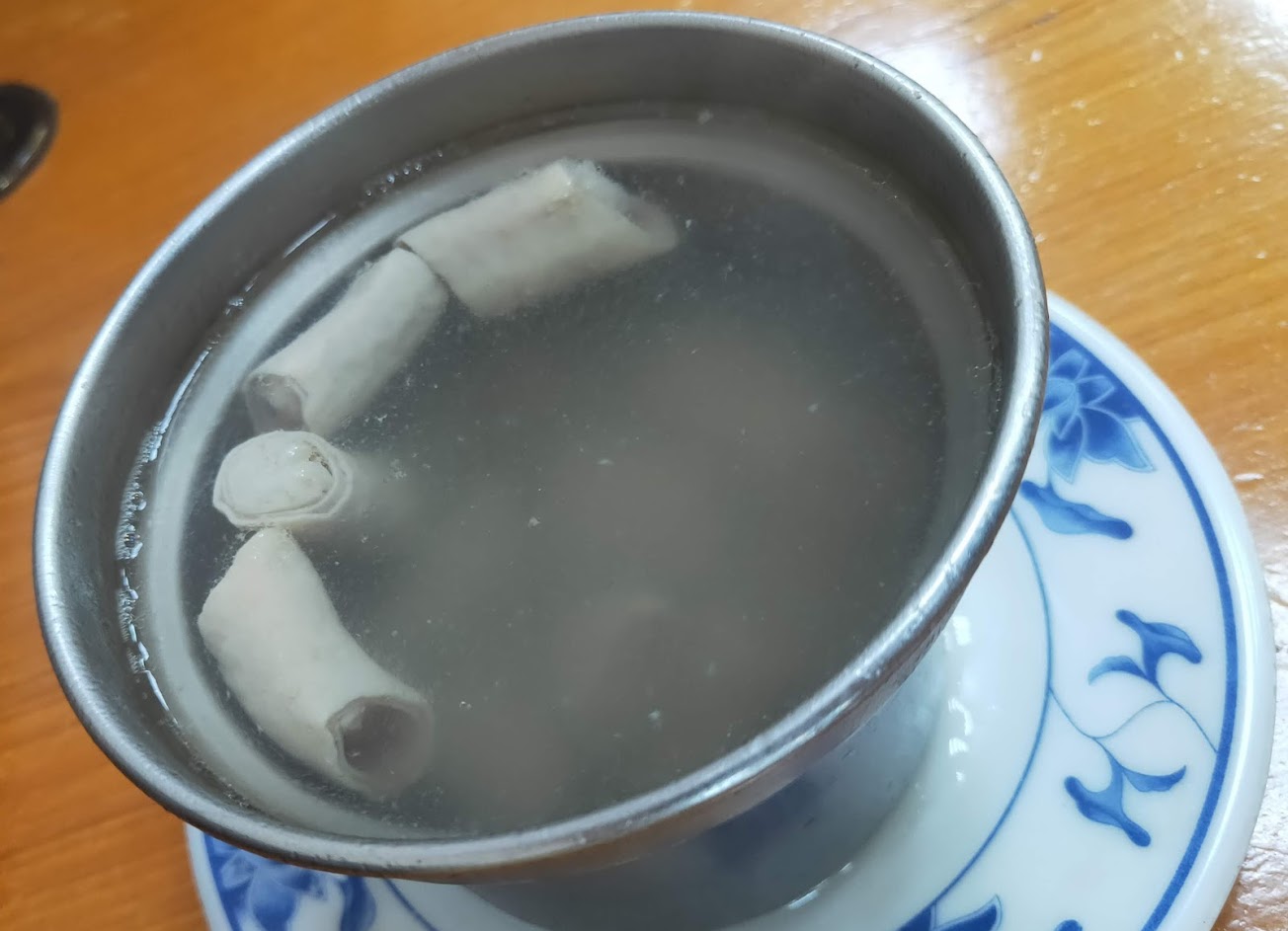 四神湯一端上來就酒香四溢,非常迷人~小腸新鮮Q嫩,碗底還有滿滿的薏仁,吃起來很滿足。