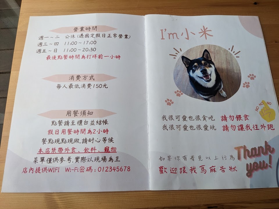 店內有一隻可愛又黏人的店狗(牠叫小米),雖然不愛鏡頭,但相當喜歡和人互動!