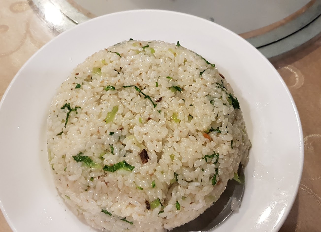 「紹興菜飯」也是推薦必點的菜色,外表平淡無奇的菜飯,聞起來也沒有酒的味道