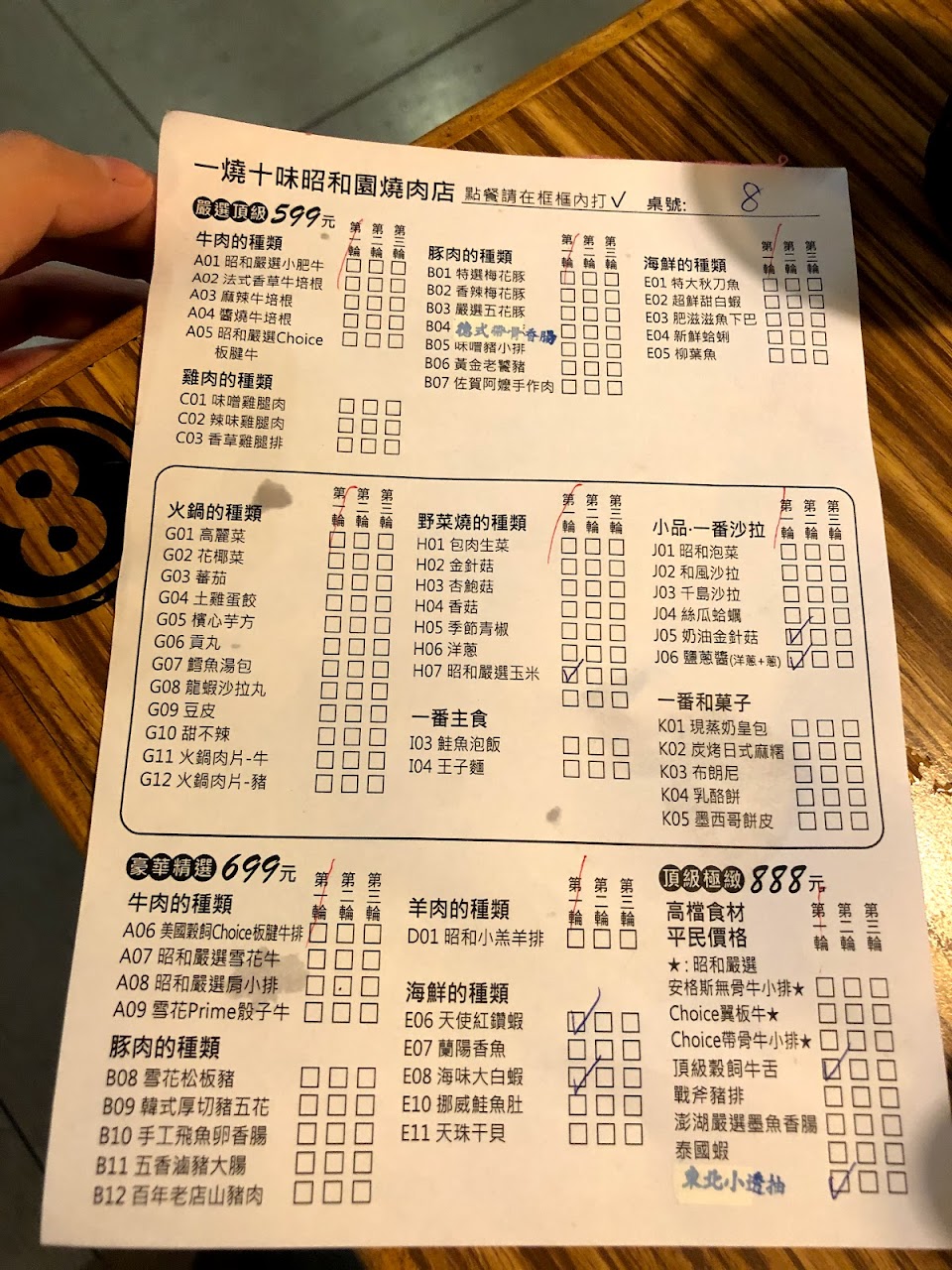 整體空間是舒服的,價位選799已經可以去吃一般飯店buffet,這邊點餐方式一次選8樣,來的量會視人數,可能是怕浪費食材之類的,但加點上菜速度也是慢慢,怕男性友人們不夠吃,所以吃的沒有很爽,雖然吃到最後還是很飽(小鳥),但覺得爽快度有差。我們這次好像點到第5、6次就是最後加點了,限時加上上菜的速度,加上還要烤的時間,大胃王去了會生氣。