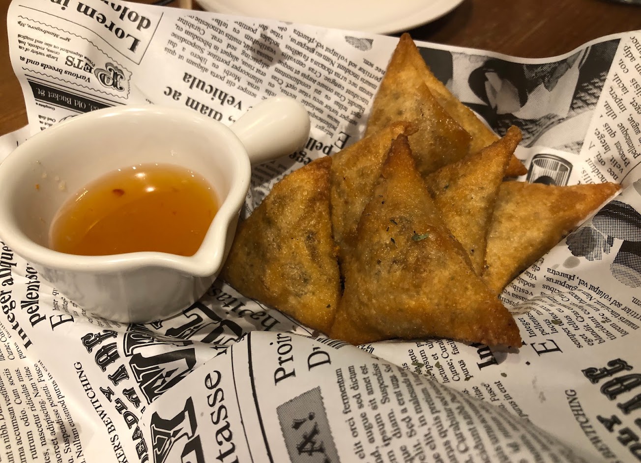 食物好吃有特色,手桿薄餅很好吃,餅皮邊脆,中間Q。泰式冬蔭功義大利麵也好吃,蝦子還撥好殼了!炸物推薦香酥魷魚??拼盤裡的魚塊也好吃。